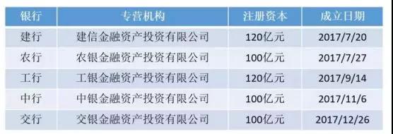 此前銀保監(jiān)會已經批準了5家國有銀行設立債轉股實施機構如下: