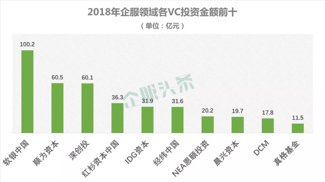 今年軟銀中國(guó)大半的資金涌入了汽車交通、文化娛樂(lè)等方面,再加上在企服領(lǐng)域投資了商湯、WeWork等獨(dú)角獸企業(yè),都比較燒錢(qián),所以雖然軟銀中國(guó)在企服領(lǐng)域投資數(shù)量不多,但投資金額排名會(huì)比較靠前。